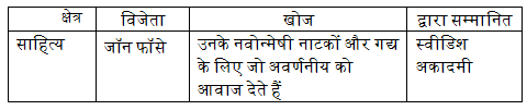 हाल ही में (अक्टूबर 2024), ऐतिहासिक त्रासदियों और मानव अस्तित्व की नाजुकता के बारे में अपनी भावुक काव्यात्मक भाषा के लिए जानी जाने वाली दक्षिण कोरियाई उपन्यासकार हान कांग को साहित्य में 2024 का नोबेल पुरस्कार मिला। 2023 में साहित्य का नोबेल पुरस्कार किसे मिला?