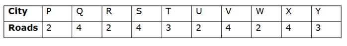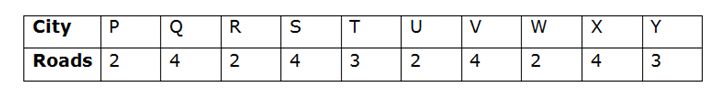 There is a network of ten cities (P – Y) connected by roads (represented by straight lines) as shown. Joseph plans to tour all cities in such a manner that he drives along all of the roads exactly once, neither repeating nor skipping any stretch of road.