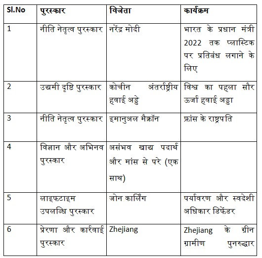 10) पॉलिसी लीडरशिप श्रेणी के तहत चैंपियंस ऑफ द अर्थ पुरस्कार किसने जीता?