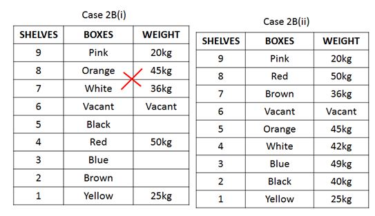 • काला रंग का बॉक्स खाली शेल्फ के नीचे नहीं रखा गया है। इस कथन से केस 2 b (i) समाप्त हो गया है। और केस 2 b (ii) अंतिम व्यवस्था है।