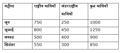 सितंबर में यात्रियों की कुल संख्या= 750 + 100 = 850