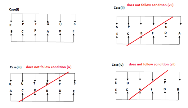 iii) U और P के बीच केवल दो लोग बैठते हैं।