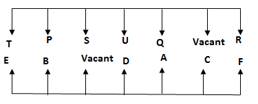 दो समानांतर पंक्तियों में बैठे बारह व्यक्ति एक-दूसरे का सामना करते हैं। पंक्ति 1 में: A, B, C, D, E और F उत्तर का सामना कर रहे हैं। पंक्ति 2 में: P, Q, R, S, T और U दक्षिण का सामना कर रहे हैं। प्रत्येक पंक्ति में एक खाली सीट होती है। ये खली सीट एक दूसरे का सामना नहीं करती हैं । सभी जानकारी एक ही क्रम में होने के लिए आवश्यक नहीं है।