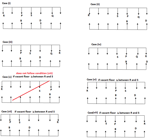 vii) Q S के बाईं ओर दूसरा स्थान पर बैठता है, जो B के तत्काल पड़ोसी के विपरीत बैठता है|