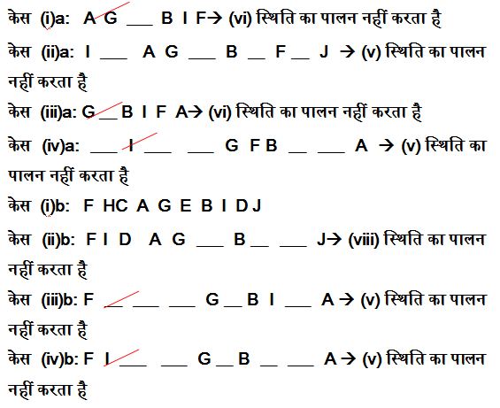 iii)। केवल तीन लोग G और F के बीच बैठते हैं, जो D के दायें में नहीं बैठता है।