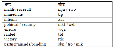 ‘Maldives immediate interim result’ को ‘mjnewoxastrp’के रूप में कोडित है|