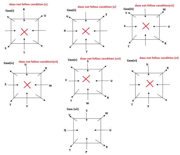 vii) P और Q एक दूसरे के विपरीत नहीं बैठता है।