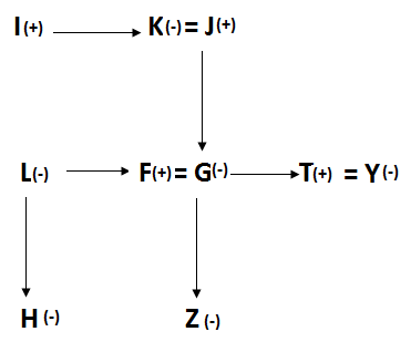 तीन विवाहित जोड़े और तीन पीढ़ियों के साथ परिवार में दस व्यक्ति हैं। I K का भाई है| J T का पिता है| Y G की भाभी है| Z G की एकमात्र बेटी है और बच्चा है| F L का भाई है, जो पुरुष सदस्य नहीं है। H F की भतीजी है| T की एक बहन है और कोई बच्चा नहीं है। G H की चाची है। K G की माँ है| T और Y शादीशुदा जोड़े हैं।