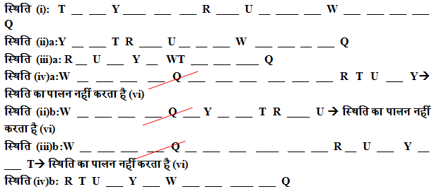 vi) W और U के बीच तीन से अधिक व्यक्ति नहीं बैठते हैं।