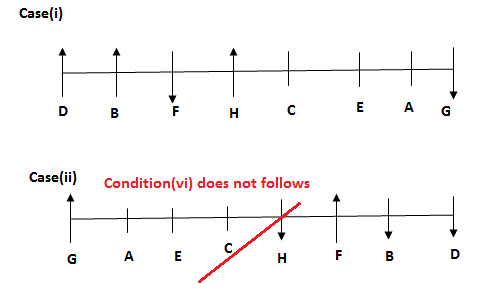 iv). Only two persons sits between C and G, who is not an immediate neighbour of D.