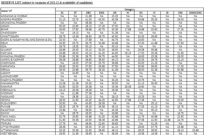 The Candidates who are under the Reserve List in all respective states and Union Territories are given below for the reference of the candidates. Candidates can check it on the official website or direct link given below.