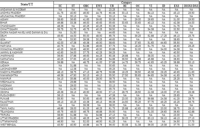 The Minimum scores out of 100 in all respective states and Union Territories are given below for the reference of the candidates. Candidates can check it on the official website or direct link given below.