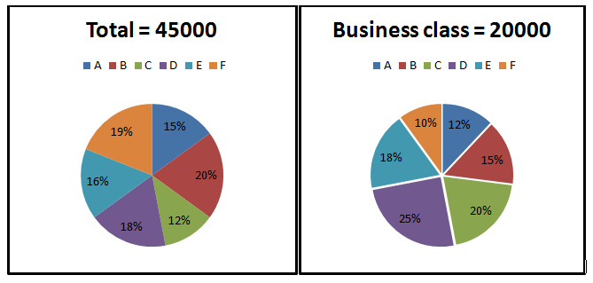 उपरोक्त तालिका से, शहर F ने सबसे अधिक टिकट बिजनेस क्लास के अलावा बुक किए