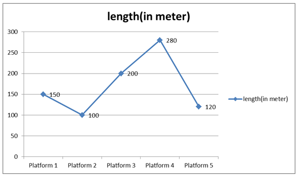 दी गई लाइन ग्राफ़ प्लेटफ़ॉर्म की लंबाई (मीटर में) दर्शाता है।
