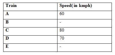 ट्रेन E की गति= 84 किमी प्रति घंटा