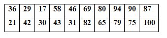 इनपुट: 57 18 25 88 96 34 19 48 77 66 29 54