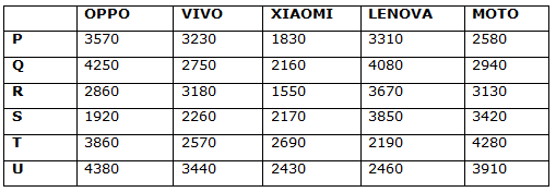 The following table shows the total number of different company mobiles sold by different shops in a certain city in the year 2017.