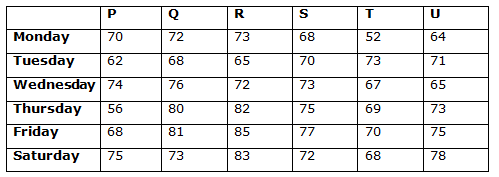 The following table shows the marks of 6 students (out of 100) in a class test of different days in a week.