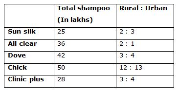 The following table shows the total number of different types of shampoos sold in the year 2017 in a certain state and the ratio of shampoo sold in rural and urban areas among them.