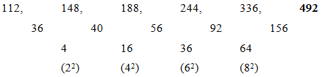 3) 112, 148, 188, 244, 336, ?