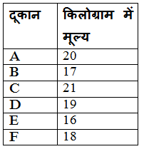 निम्नलिखित बार ग्राफ 6 अलग-अलग दुकानों में बेचे गए गेहूं (क्विंटल में) की कुल मात्रा दिखाता है और तालिका प्रति किलो गेहूं की कीमत दिखाती है।
