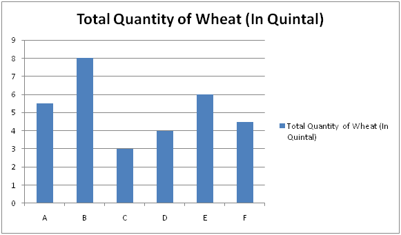 10) दुकान A, B और E द्वारा बेची गई गेहूं की कुल मात्रा और दुकान C, D और F द्वारा बेची गई गेहूं की कुल मात्रा के बीच अंतर ज्ञात कीजिए?