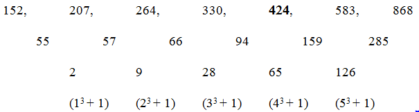 अंतर का अंतर है , 13 + 1, 23 + 1, 33 +1, 43 +1, 53 +1,..