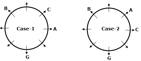 G sits third to the left of B. C and A are immediate neighbours and none of them are immediate neighbours of both G and B.