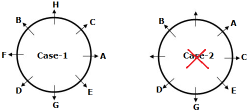 There are eight persons sitting in a circular table with equidistance between each other. They all are facing opposite to centre of the table.