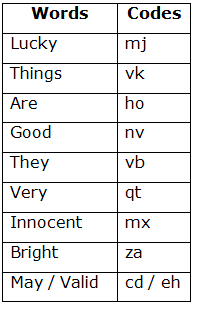8) If ‘he may genuine’ is coded as ‘cd fsxt’, then how will be ‘things are valid’ is coded?