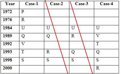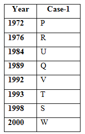 Eight persons are born in the same day of same months in the seven different years viz., 1972, 1976, 1984, 1989, 1992, 1993, 1998 and 2000. Their ages were calculated based on the year 2018.Q was born in one of the odd numbered years. Only one person was born between Q and R. Only three persons are born between U and S, who is younger than U. U is younger than P. T was born immediately after V. W is not elder than V.