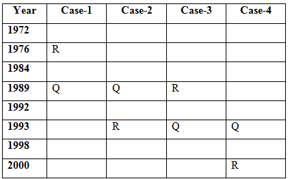 Q was born in one of the odd numbered years. Only one person was born between Q and R.