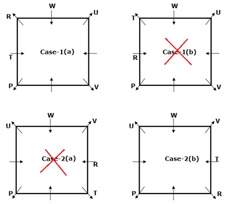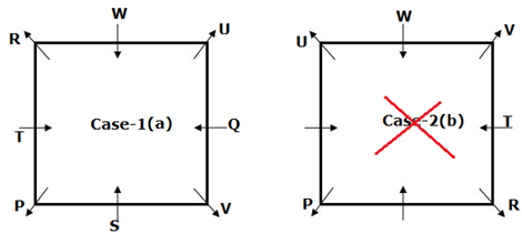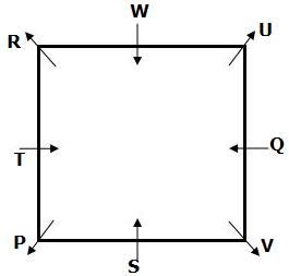 Eight persons P, Q, R, S, T, U, V and W are sitting in a square table in such a way that four of them are sitting in the corners and four of them are sitting in the middle of the sides. The persons sitting at the corners are facing away from centre and the persons sitting at the middle of the sides are facing centre of the table.