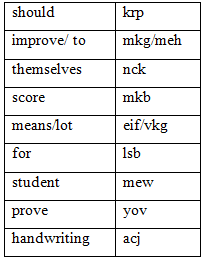 “Should improve handwriting to score” coded as “acjkrpmkg meh mkb”