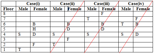 Eight couple are living in eight different floors in an apartment. P, Q, R, S, T, U, V and W are male members married to A, B, C, D, E, F, G and H are female members.The lowermost floor numbered one its above floor numbered two and so on till top most floor numbered eight.All the given information is not necessary to be in the same order.