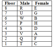 ix).Only two people lives between P and Q, who does not live any floor above W.