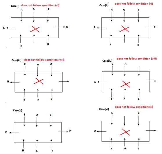 Eight people A, B, C, D, E, F, G and H are sitting in the rectangular table. Only three people are sitting in the longer side to the table. And only two people sits in the shorter side of the table. The person who sits at longer side of the table are facing inside the table and the person who sits at shorter side of the rectangle are facing outside the table. All the information is not necessary to be in the same order. Only two people sit between F and G. H sits second to the left of F. C is neither an immediate neighbour of F nor G. Only two people sit between E and A. B does not sit at shorter side of the table. F does not sit at shorter side of the table. C neither faces A nor E. Neither E nor A is an immediate neighbour of D. F is not an immediate neighbour of E. B sits second to the left of E, neither of sits at shorter side of the table. D neither faces C nor G. B is not an immediate neighbour of C.