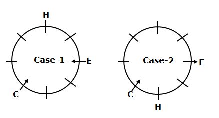 E C के दाईं ओर तीसरे स्थान पर बैठे है, जो टेबल के केंद्र से विपरीत की ओर मुख किये हुए है। H E के दाईं ओर दूसरे स्थान पर बैठे है। C के तत्काल पड़ोसी एक ही दिशा का सामना करते है। G B के तत्काल दायाँ पर बैठता है और उनमें से कोई भी E के विपरीत नहीं बैठता है। B और G दोनों एक ही दिशा का सामना कर रहे हैं। केवल एक व्यक्ति A और D के बीच बैठता है और दोनों एक ही दिशा का सामना कर रहे हैं। D C के विपरीत नहीं बैठा है| H G के समान दिशा का सामना करता है।