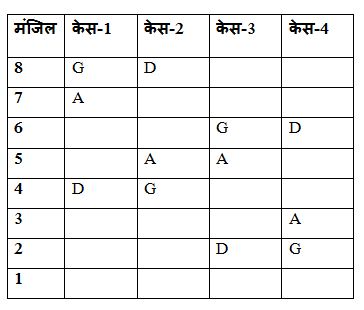• D और A के बीच केवल दो लोग रह रहे हैं, जो किसी एक विषम संख्या मंजिल पर रहते हैं लेकिन सबसे नीचे की मंजिल पर नहीं।