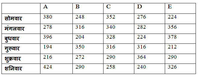 9) मंगलवार और शनिवार को बस D द्वारा यात्रा की जाने वाली कुल दूरी, सोमवार और बुधवार को बस B द्वारा यात्रा की गई कुल दूरी के बीच अंतर ज्ञात कीजिए?