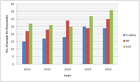 6) सभी दिए गए वर्षों में Toshiba और Dell लैपटॉप का उपयोग करने वाले लोगों की कुल संख्या के बीच अंतर ज्ञात कीजिए?