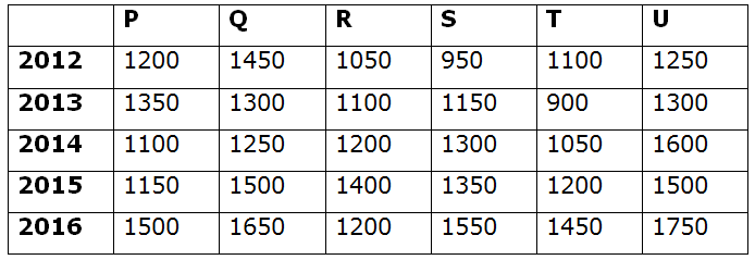 6) सभी दी गई कंपनियों में वर्ष 2012 में काम कर रहे कर्मचारियों की कुल संख्या और वर्ष 2016 में काम कर रहे कर्मचारियों की कुल संख्या के बीच अंतर ज्ञात कीजिये?