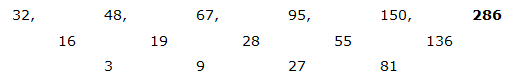 4) 5, 15, 75, 225, 1125, ? , 16875