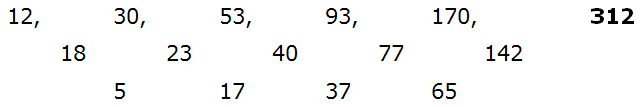 पैटर्न है,+13 – 1, +23 – 2, +33 – 3, +43 – 4, +53 – 5,…