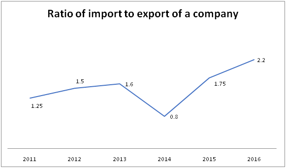 निम्नलिखित पंक्ति-ग्राफ 6 अलग-अलग वर्षों में कंपनी के निर्यात के लिए आयात के अनुपात को दिखाता है।