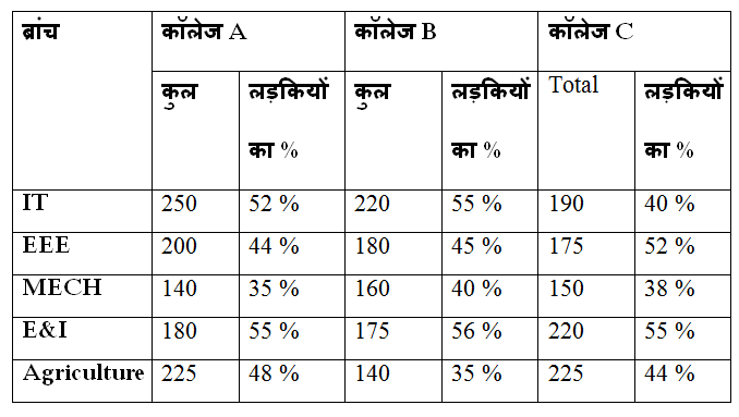 9) कॉलेज B में IT, MECH और Agriculture विभाग में लड़कियों का औसत ज्ञात कीजिए?