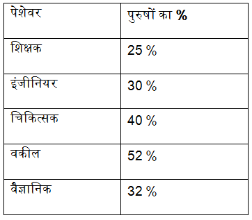 तालिका उनमें से पुरुष पेशेवरों का प्रतिशत दिखाती है।