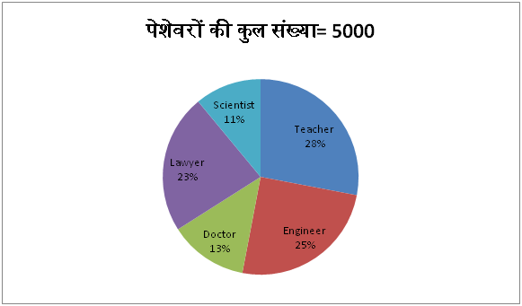 निम्नलिखित पाई चार्ट एक निश्चित शहर में विभिन्न पेशेवरों की कुल संख्या का प्रतिशत वितरण दिखाता है।