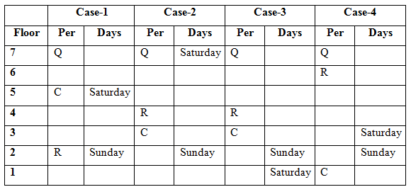 - More than three persons live between Q and the one who attend the meeting on last day of the week, who does not live on the ground floor. Q lives one of the odd numbered floors but above C lives.