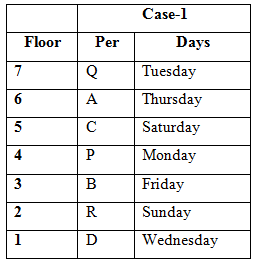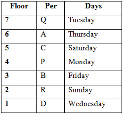 Seven persons A, B, C, D, P, Q and R are living on a seven storey building in such a way that the ground floor is numbered one, the above one is numbered two and so on till the topmost floor is numbered seven. They all are attending the meeting in seven different days of the same week from Monday to Sunday but not necessary in the same order. No two persons attend the meeting in the same day.